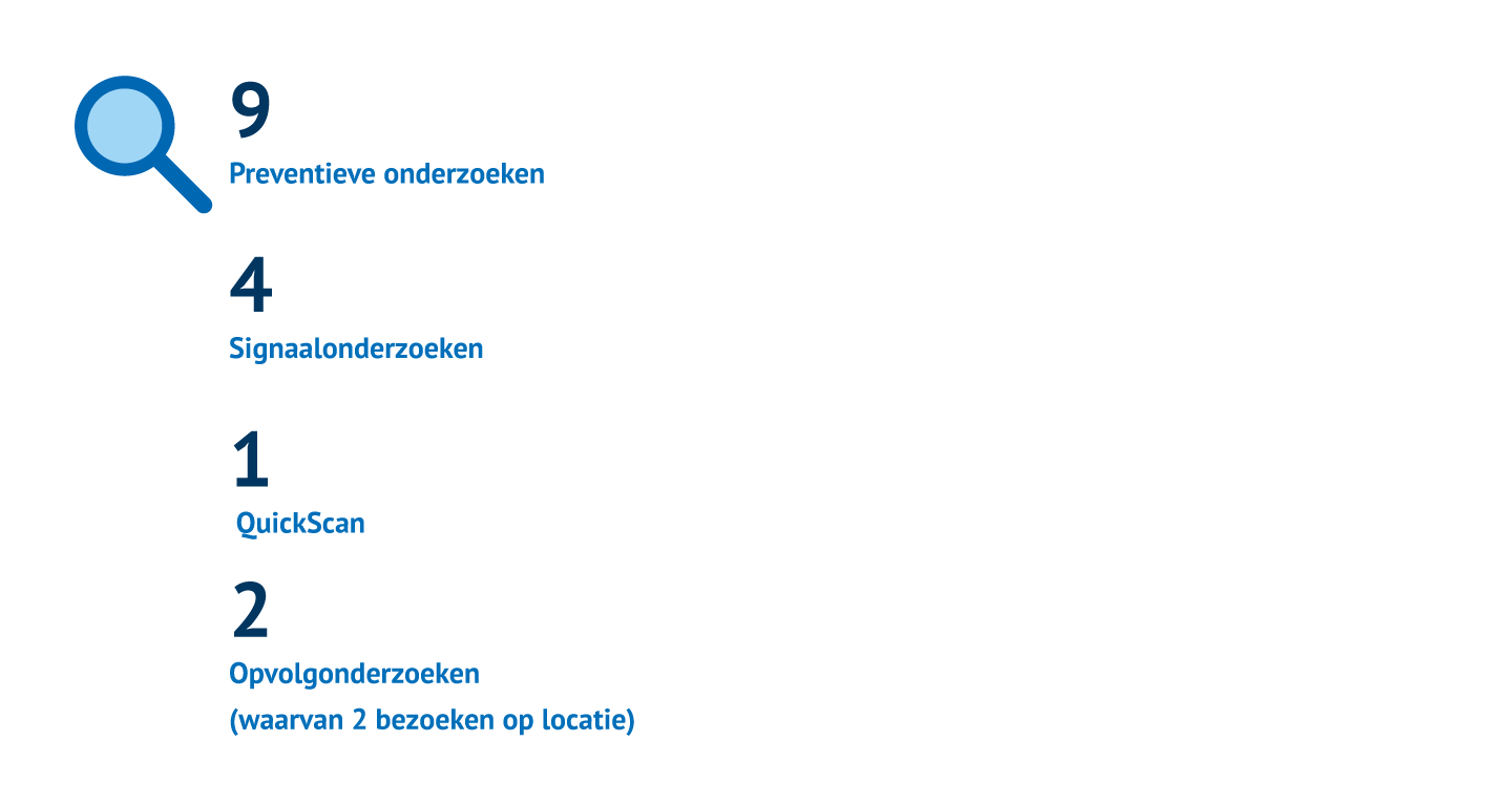 We doen niet alleen onderzoek naar meldingen, we houden ook toezicht door het doen van preventieve en signaalonderzoeken.